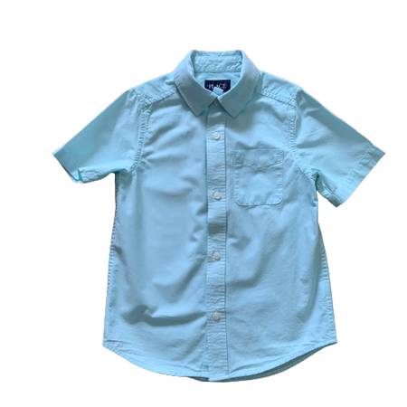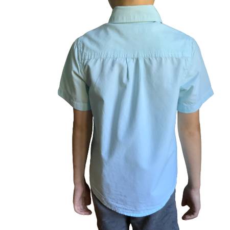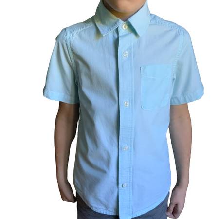 Up for sale Boys Poplin Button Up Short Sleeve Shirt, Size S 5/6 - Mellow Aqua Color, the Children's Place Brand.