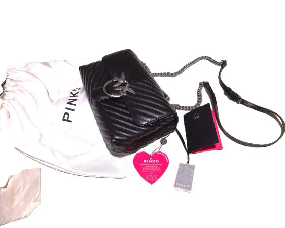 Pinko Love Baby Puff Maxi Quilted Crossbody Bag Trapunta Black Leather NWT