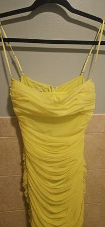 House of CB Ella Neon Green Ruched Organza Mesh Mini Dress Size Small, pre-owned LIKE NEW BN470