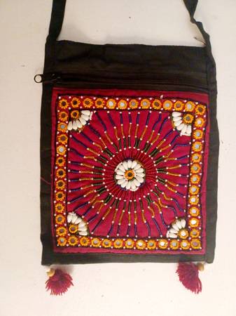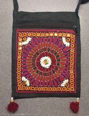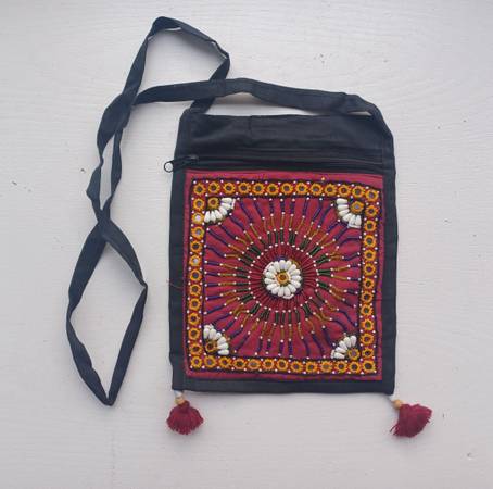 Handmade Canvas Tote Sling Bag Purse, Thai Embroidered Fabric, Ornate.