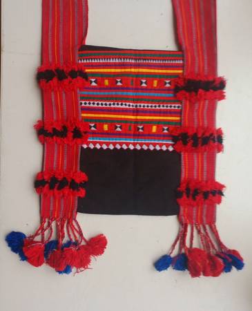 The decoration and embroidery is typical of the Lahu Thai Hilltribe and also appears on their clothing.