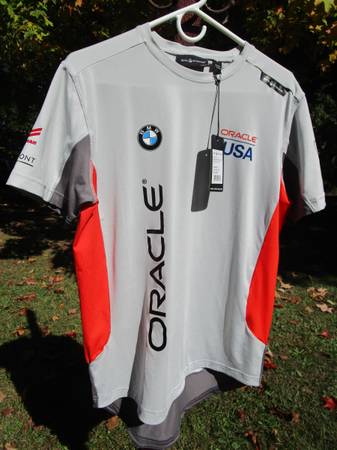 Sail Racing Oracle Team USA Technical Tee. Light Grey, Men's Size Large, New with Tags Still On. From a Non-Smoking Home. Texting or Calling is best, but email is ok.