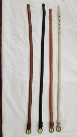 Made in New York/1970's Black, British Tan, Cream and Tobac. Harness leather and solid brass buckle measures 31"/says 26 on back. Mint condition, hardly used