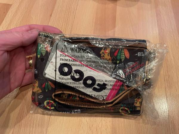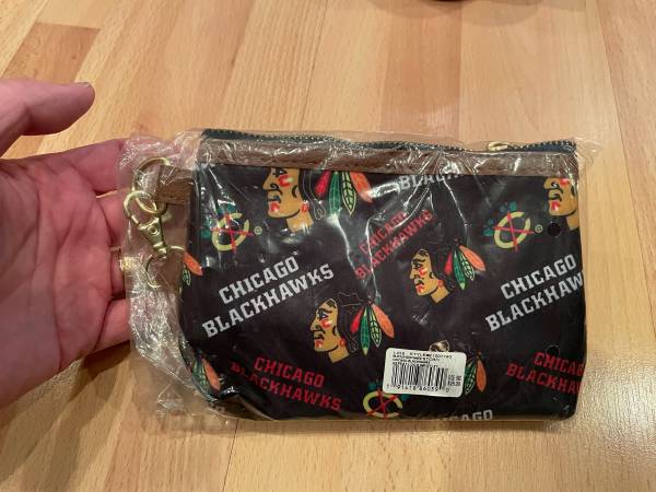 This is a new in bag Chicago Blackhawks wristlet purse. It is from FOCO with tags still on. I am asking $20. I am willing to meet close to Vernon Hills for a cash exchange. Thank you.