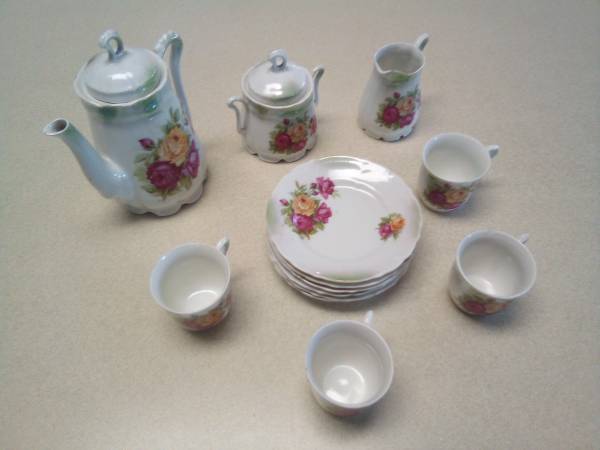 Have for sale the following 2 child's Tea Party Sets. a. Miniature set with carrying case and brochure is $10 b. Larger set made in Germany is $25 Pick Up and Cash Only