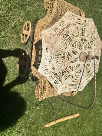 The wicker part fo the buggy is 18.5" long and stand's aprox 14.5" Tall