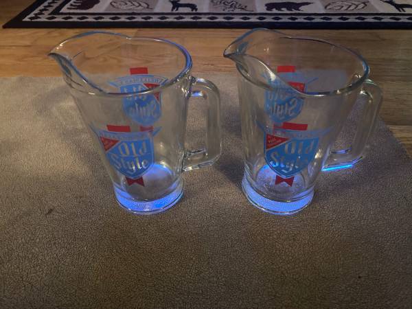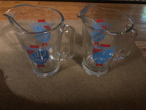 For Sale ( 2 ) Vintage Heileman's Old Style Pitchers - Heavy Glass, Asking $15.00 each or buy both for $25.00. Great for your bar or man cave! Interested Call or Text .