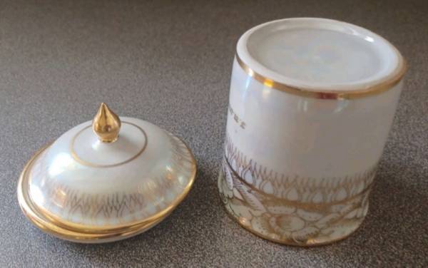 Thai Hand Painted Gold Trim Porcelain cup with gold-trim lid and...