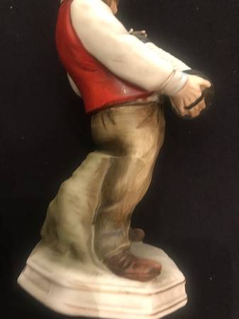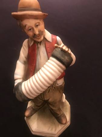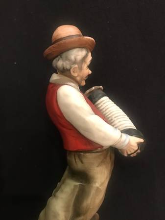 This vintage Capodimonte figurine of an old man playing the accordion is in excellent condition. It has the Capodimonte signature emblem on the bottom of the piece. It measures 7" high x 3.25" wide. It is in exceptional condition as my grandmother kept it in her curio cabinet. Notice the intricate details. It was made in Italy.