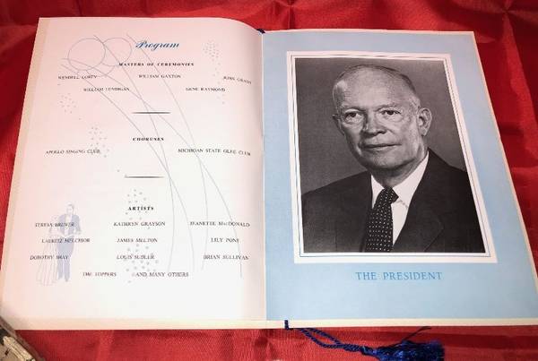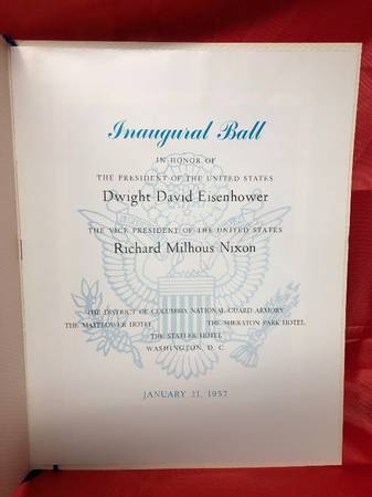 1957 Dwight D. Eisenhower Inauguration Ball Program with original envelope. Approx. 11" x 9". In very good condition. From a pet and smoke free home. Available for LOCAL PICKUP ONLY in Palatine....