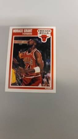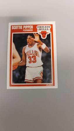 Pre-owned 1989-90 Fleer basketball set in excellent condition. The 1989-90 Fleer basketball set consists of 168 standard-size cards and 11 All-star sticker card set. The player's name and position appear in the upper left corner, with the team logo superimposed over the upper right corner of the picture. The horizontally oriented backs have black lettering on red, pink, and white background and present career statistics, biographical information, and a performance index. The set is ordered alphabetically in team subsets (with a few exceptions due to late trades). The only subset is All-Star Game Combos (163-167). Rookie Cards of note in this set include Hersey Hawkins, Jeff Hornacek, Kevin Johnson, Reggie Lewis, Dan Majerle, Danny Manning, Mitch Richmond, Rik Smits, and Rod Strickland. Also includes superstars Jordan, Magic, Bird, Barkley, Ewing, Pippen, Grant, Stockton, Olajuwon, Rodman, Malone and Drexler