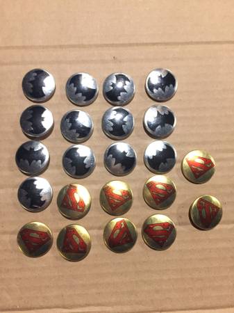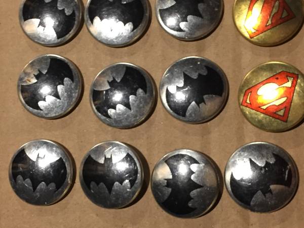 This is a group of 22 vintage Superman and Batman pins. The backs have rusting and age patina. I am asking best offer for the group. Contact if interested.
