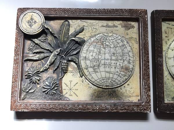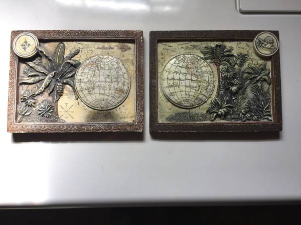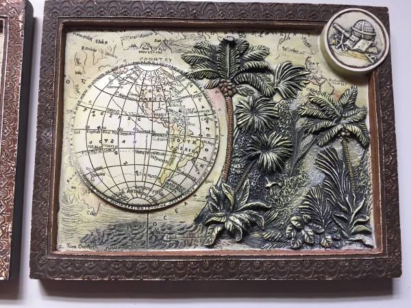 This is a estate find, 2 vintage Global Safari map 3D wall plaques by Tina Chaden.
