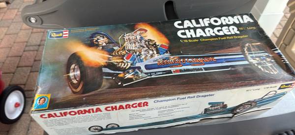 Rare Revell 1/16 scale model Top Fuel Car Keeling & Clayton California Charger. Partially built kit.