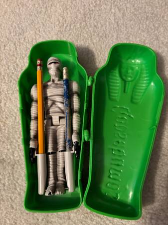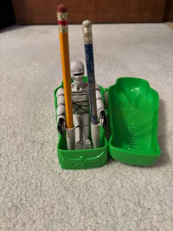 * Unique action feature: Open the case and the Mummy figure pops up to hold two pencils (pencils not included).
