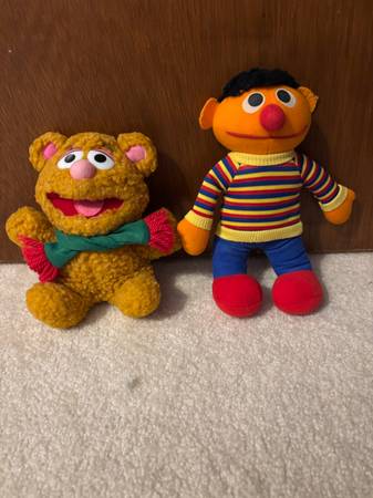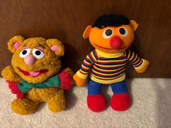 Own a pair of classic plush toys from the beloved Jim Henson universe: Ernie from Sesame Street and Fozzie Bear from The Muppets.
