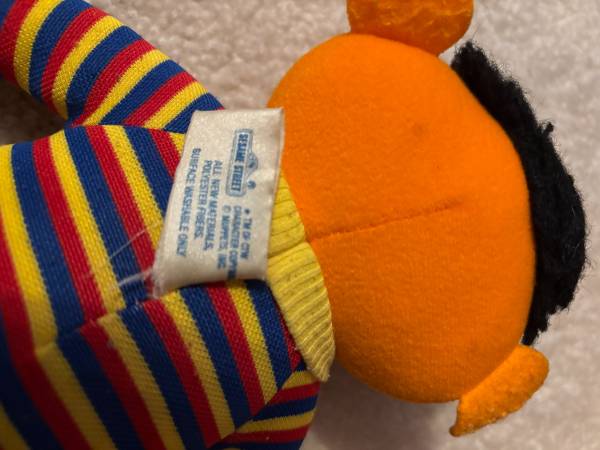 Ernie: This classic plush of the Sesame Street favorite, with his iconic striped sweater and red nose, measures about 10 inches tall.