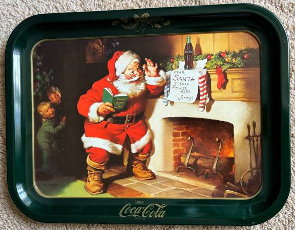 Own a piece of holiday nostalgia with this collectible vintage Coca-Cola Santa serving tray. Features the iconic artwork "Dear Santa: Please Pause Here," originally painted by Haddon Sundblom in...