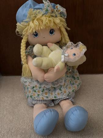 Adorable 1992 cloth doll holding a baby — a Target exclusive!