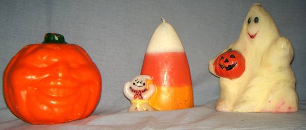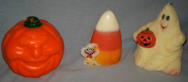 I'm selling a fantastic vintage Halloween candle set of three (3) figures. These are classic holiday decorations that appear to be from the 1970s or 1980s and are still in unused condition—the wicks are intact!