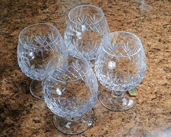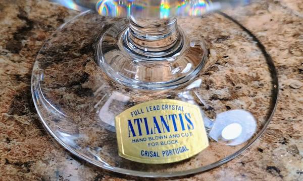 Beautiful Atlantis 24% heavy lead crystal wine glasses, 4 1/5" tall never used, from the mid '80s, hand blown and cut in Portugal.