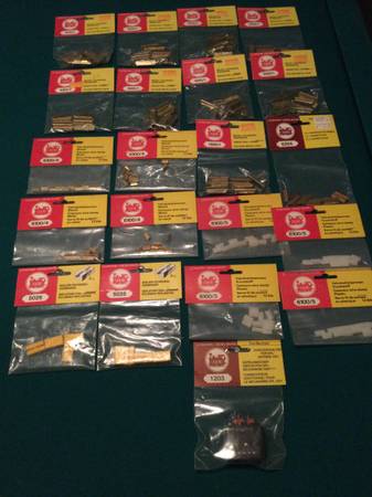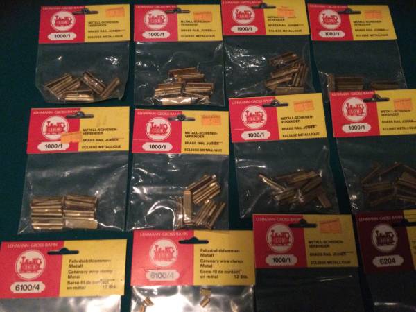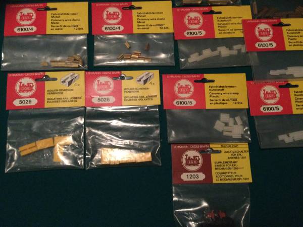 LGB Train Unopened plastic, sealed parts, 21 packages NOS. Various connectors and parts. New Old Stock.