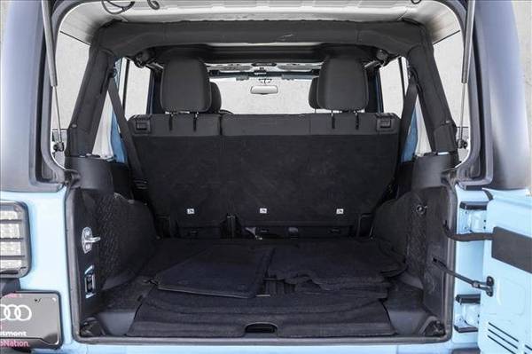 * Transmission: 5-Speed Automatic (W5A580) * Black 3-Piece Hard Top * Alpine 9-Speaker W/All Weather Subwoofer * Connectivity Group * Tubular Side Steps * Sirius Satellite Radio * Convertible Hardtop * 3.21 Rear Axle Ratio * Black; Cloth Seats W/Adjustable Head Restraints * Chief Clearcoat * Engine: 3.6L V6 24V Vvt * Tires: P255/75R17 Owl On/Off Road * Wheels: 17" X 7.5" AluminumThis vehicle includes a Money-Back Guarantee* and passed our precise inspection process. Best of all the price you see is the price you pay. No haggling. No back and forth. No pressure. And this price is so good it is guaranteed. *Money-Back Guarantee is valid for 5 days or 250 miles, whichever comes first. Subject to certain terms and conditions. See store for details. Some restrictions apply.Thank you for your interest in one of Audi Westmont's online offerings. Please continue for more information regarding this 2017 Jeep Wrangler Unlimited Sport Recently performed our rigorous and Certified AutoNation 125 point Performance inspection; Performed at Audi Westmont by factory trained technicians, with all services brought up to date. Also includes our exclusive AutoNation 90 day/ 4,000 miles warranty. Complimentary loaner cars (over 60 Audis available), complimentary lifetime car washes (open 6 days a week) and much more. * A Money-Back Guarantee is valid for 5 days or 250 miles, whichever comes first. Subject to certain terms and conditions. See store for details. Some restrictions apply. Our pre-owned vehicles are priced right from the beginning. The price you see if the price you pay. No haggling. No back and forth. No pressure. This Jeep includes: ENGINE: 3.6L V6 24V VVT (STD) V6 Cylinder Engine Gasoline Fuel *Note - For third party subscriptions or services, please contact the dealer for more information.* This SUV is a great example of beauty and brawn with classic styling and a workhorse power plant. At home in the country and in the city, this 2017 4WD Jeep Wrangler Unlimited Sport has been wonderfully refined to handle any occasion. Smooth steering, superior acceleration and a supple ride are just a few of its qualities. In addition to being well-cared for, this Jeep Wrangler Unlimited has very low mileage making it a rare find. More information about the 2017 Jeep Wrangler Unlimited: With prices starting at a little under $23,000 with standard 4-wheel drive, the classic Wrangler is one of the best SUV values available. The 6-speed manual transmission helps the Wrangler achieve a decent 17 mpg city and 21 mpg highway rating. Jeep considers the Wrangler's off-road prowess integral to the brand and they continue to make one of the most capable 4-wheel drive vehicles available. This model sets itself apart with Iconic styling, 2- and 4-door configurations available, and impressive off-road prowess