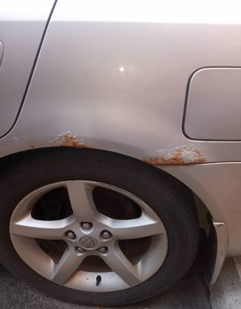 The wheel alignment needs to be repaired. The front end suspension, control arms and tie rods are worn out. The car battery and A/C needs to be replaced. Rust has developed on both sides of the car.