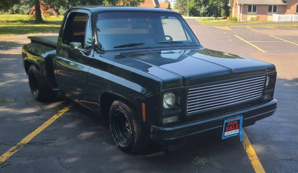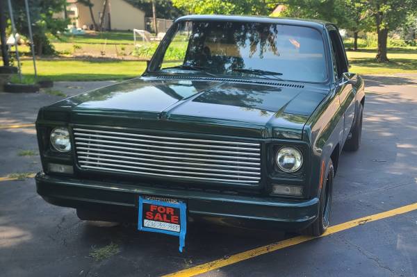 1979 Chevrolet C10 SWB Stepside originally bought green but repainted 1993 Bonneville Green. Originally a diesel, now upgraded with a powerful 454 V8. All power: power windows, power locks, tilt/cruise, 3 gas tanks and air tank for air horn. Solid and very smooth riding truck. Owned by a 97 year old gear head who was the original owner that passed in January, so I’m selling for the family. Located in Naperville. Delivery for a fee. Call Mark with any questions 630-745-Nine Four Eight Eight.