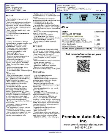 Hi I am selling our 2006 Mercedes Benz SL500 ROADSTER HARDTOP COVERT WITH RARE SUNROOF Fully loaded Auto with sport mode and paddle shift option Alabaster white Ext W/ Ash leath int/Birchwood Trim ,p.s p.b p.d.l pwr windows 6 way leather heated seats pwr/Sun moonroof,abs am/fm/ Stereo,. 6 disc CD, mp3 ,blue tooth,factory alarm.remote door trunk opener,built in garg door opener tilt,cruze ,pwr mirrors, Cold ,r A/C heat climate control SRS airbags 6 way memory seats heated and colled with built in massager' Door shadow courtesy lights lighted rear trunk emblem Hid headlights alloy rims ,181k orig hwy mis, gargd kept Runs and looks Great .Solid no rust or dents always garagd kept low profile tires Dealer maintained was 98.000$ new