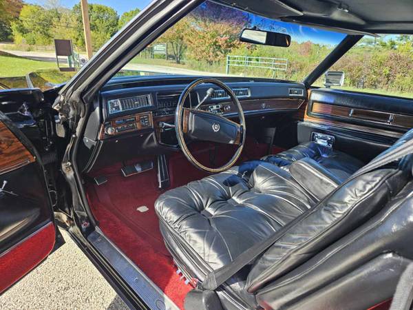 1977 Cadillac Eldorado Biarrtz. Hard to find Triple black!! Only 32,450 original miles. The best of the best in 77 from Cadillac.. One of the finest original examples i've seen...Very nice survivor condition. No rust and no bubbling rust around vinyl top like most of these cars have!...All original including paint except for replacement front bumper fillers / rear lic plate filler. loaded with Astroroof, almost every available option from Cadillac. If you like factory original cars with a small bit of patina showing over the years, This is your car, not a never ending restoration project with lip stick all over it., Recent service, alighnment, and exhaust with resinator, ready to go! ....Lets clear the air now. I don't need to sell nor do I need the money so go play games with someone else. SERIOUS BUYERS / COLLECTORS feel free to contact me with any questions. $23,900