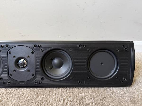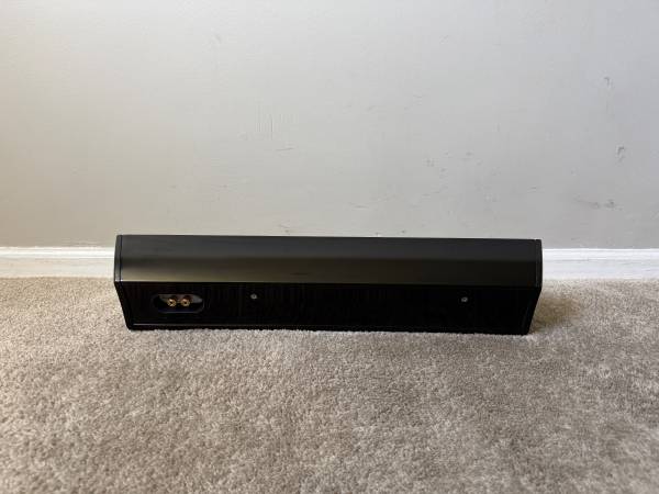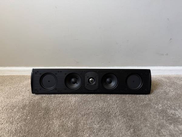 Definitive Technology Mythos Three center channel speaker for home theater surround system. It is rated 200 watts. The speaker has dual 4.5" active woofers, dual 4.5" passive bass radiators and 1" tweeter in the middle. The speaker is in great working and good cosmetic condition. Dimensions: 25.5" Wide, 5.5" High and 4.25" Deep. I will have it hooked up to my garage stereo so you can hear it before buying! The price is $80 firm, not negotiable!
