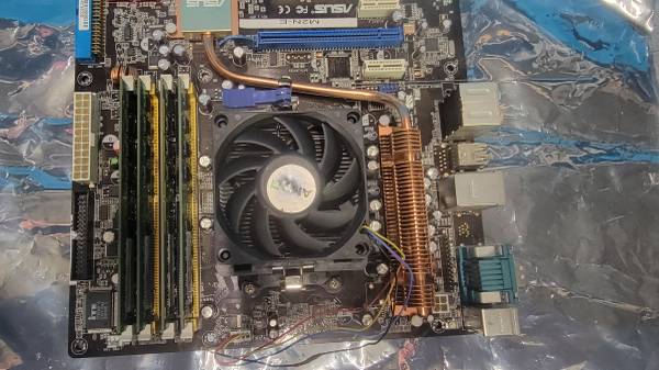 This is a collection of used PC parts. Included is: - ASUS M2N-E Motherboard -AMD Athlon 64 CPU w/ Cooler -8 GB DDR2 RAM kit -SH-S162 Lightscribe DVD Writer w/ IDE cable $30 CASH out the door for...