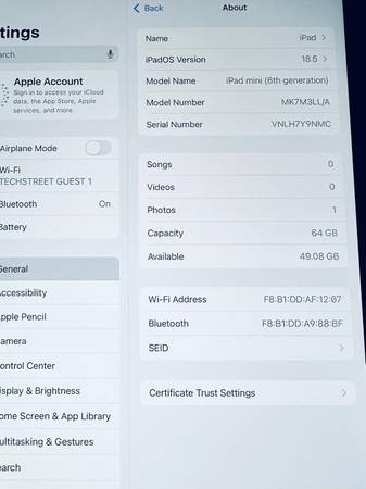 I am selling Apple iPad Mini 6th Gen, WiFi, 64GB. I factory reset it so it’s like new and all accounts and data is removed.