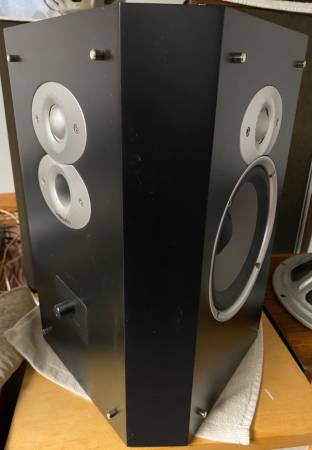 Nice pair of Polk two way loudspeakers. Both woofers and tweeters are fully working in each. Surrounds are rubber so never rotted foam to worry about. They are ported and designed to be wall hung, but just fine sitting on stands or on the floor.