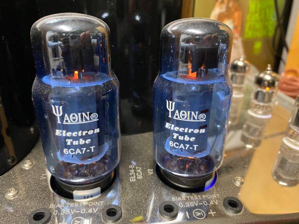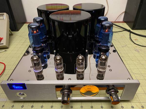 Unit has a selector for power, volume, and which of the 4 AUX inputs is being selected. There are taps for setting the tube bias which I have done for this set of tubes.