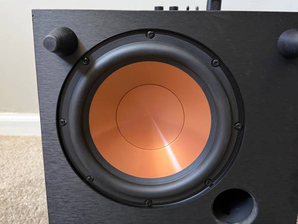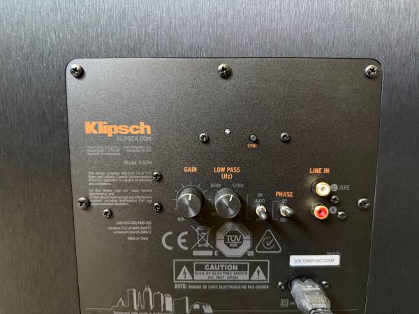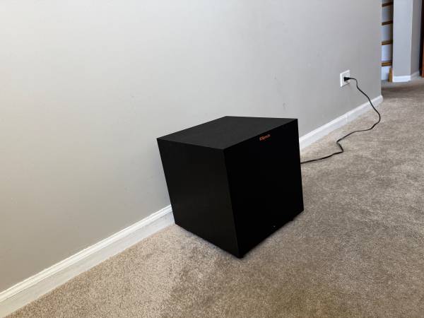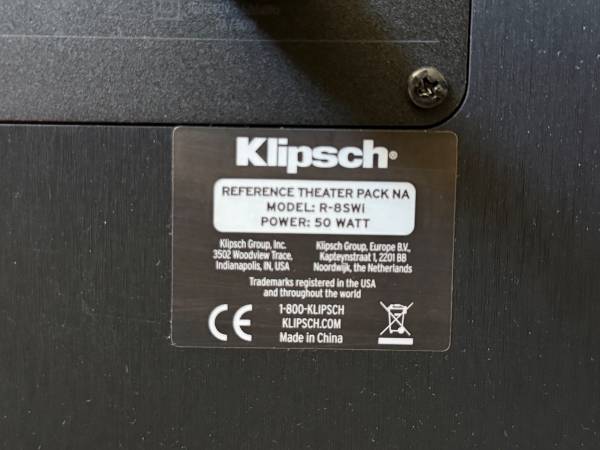 Klipsch R-8SWi home theater surround powered active subwoofer. The sub is in good shape and it sounds great, a lot of bass, 50W with a 8" woofer at the bottom, it says 50 watts but it sounds louder, Klipsch sound quality similar to JBL and Polk Audio! I will have it hooked up to the garage stereo so you can hear it before buying! The price is $80 firm, not negotiable!