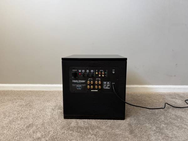 Definitive Technology PowerField Super Cube I powered active subwoofer. The sub is in great working and cosmetic condition! It has 10" woofer in front and 2 1-" passive woofers on the sides! Dimensions: 14.5" Wide, 14.75" High and 15.5" Deep! I will have it hooked up to the garage stereo system so you can hear it before buying! The price is $200 firm, not negotiable!