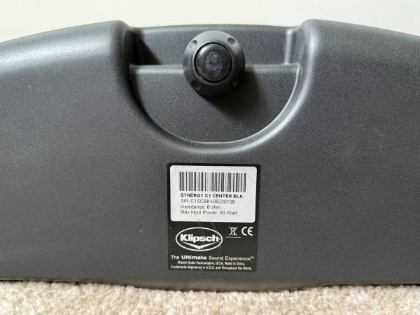 Klipsch Synergy Series C-1 center channel speaker for your home theater surround sound system. The speaker is in great condition and it is perfectly working. The power handling is 50 watts RMS power and 200 watts Peak power! The speaker has dual 4" woofers and 0.75" horn tweeter at the middle! Dimensions - Height: 6", Width: 16" and Depth: 5.25". The manual book is included! I will have it hooked up to the garage stereo so you can hear it before buying! The price is $40 firm, not negotiable!