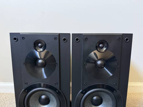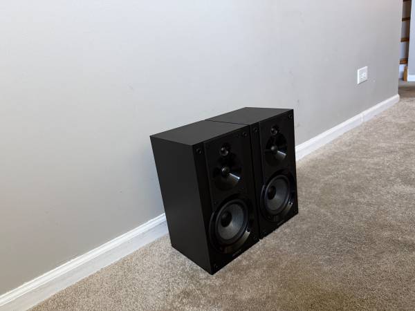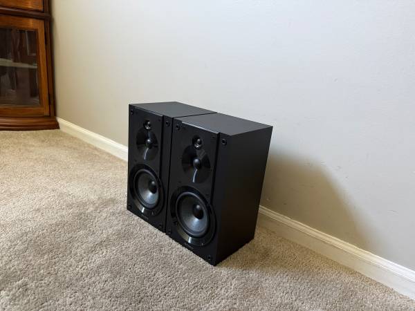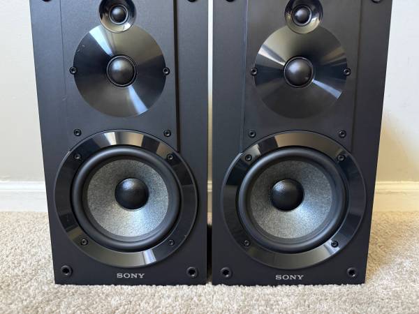 Sony SS-CS5 book shelf speakers for your home theater or surround sound system. They are in good working and cosmetic condition, both sound great and the dimensions are 13.25" High, 7" Wide and 8.5" Deep. Each speaker is rated 100W. I will have them hooked up to the garage stereo so you can hear them. The price is $80 firm, not negotiable!