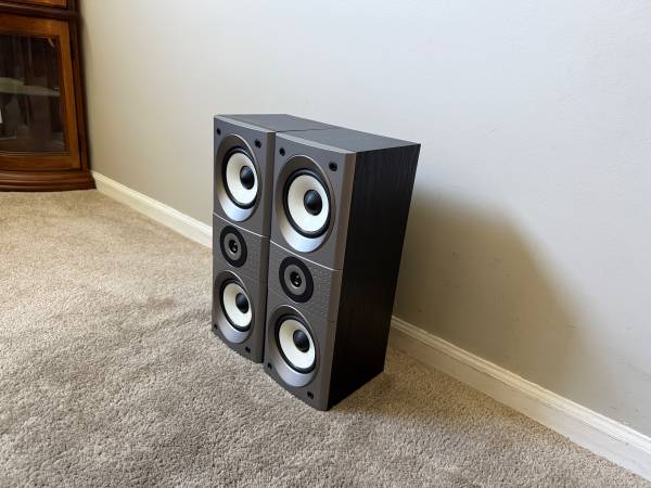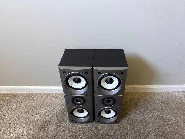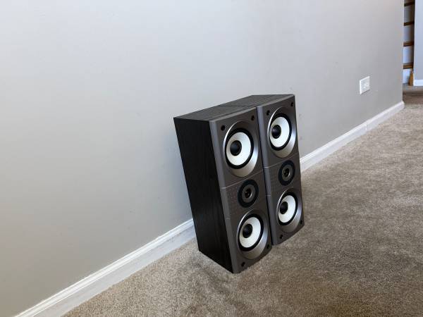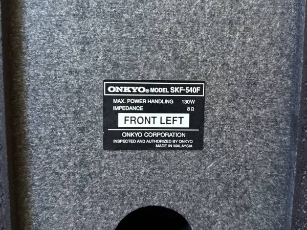 Onkyo SKF-540F bookshelf speakers for your house stereo or surround system. Both are perfectly working and in good condition. Each speaker is rated 130W at 8 Ohms and has dual 5" woofers and 1" tweeter. Dimensions: 6.25" Wide, 17" High and 8" Deep. I will have them connected to the garage stereo so you can hear them before buying! The price is $40 firm, not negotiable.