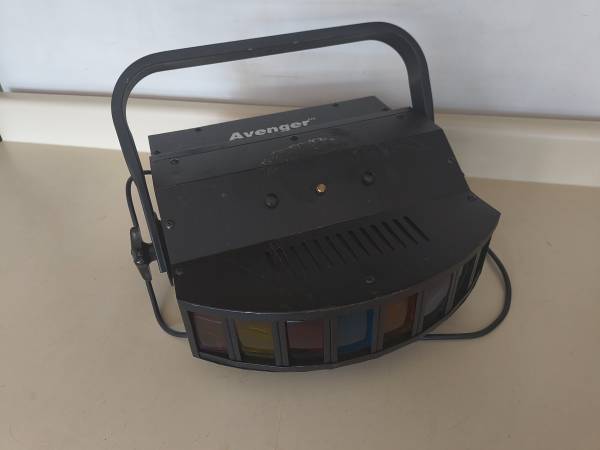 American DJ light. Avenger. Works and moves and lights up. Bright 300 watts. Try out before buying. Cash and pick up only. Thanks for looking. Key: Maxell Panasonic minidv tape EV Electro Voice...