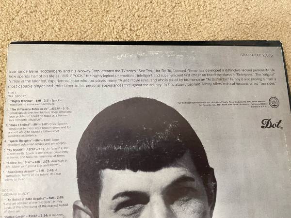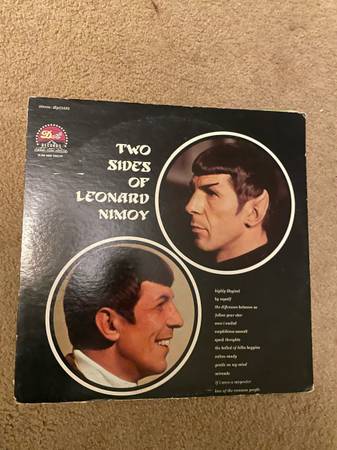 This is record from Leonard Nimoy from Star Trek. Appears to be from 1968. Cover and record are in good shape. No scratches that I can see. Online I’ve found $35 for a playable and $15 for a non-playable. I am asking $30 or best offer. I am willing to meet near Vernon Hills for a cash exchange. Thank you.