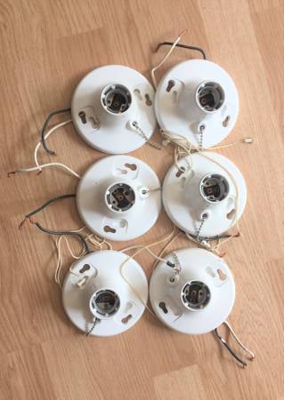WHITE PLASTIC PULL-CHAIN LAMP HOLDERS AND LAMP HOLDERS, Like New Plastic Pull-Chain Lamp holder, 6 pieces Plastic Lamp Holders, 3 pieces In excellent conditions $18 Cash, Pick up only