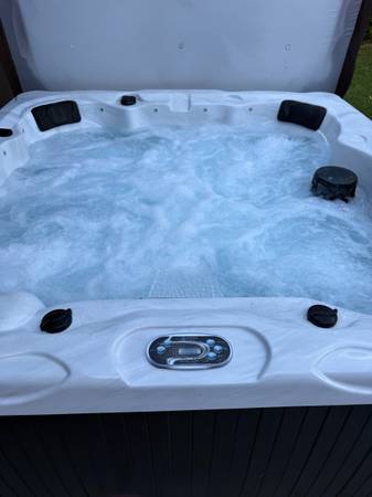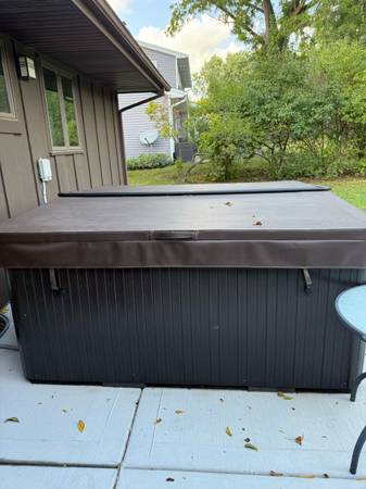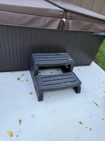 Spa with an acrylic shell, insulated locking hard cover including a cover lift. Composite Cabinet with resin stairs. Purchased 01/2024. Dimensions: 82”x 82”, 36” depth Included options; 2 high...