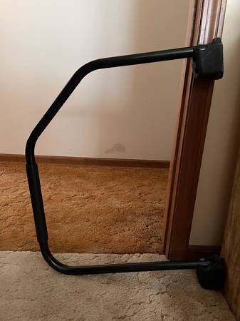 Handle can be lifted up and swivel over the door of the 5th wheel when traveling or when closing up trailer
