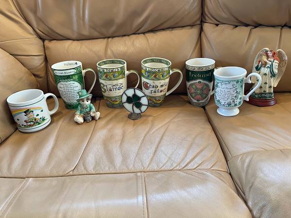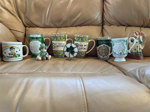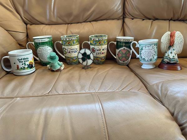 4 Taller Coffee Mugs and the Shamrock Stained Glass on stand have been sold