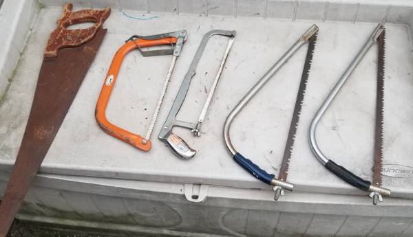 4 hacksaws and regular saw...buy all for 21. One of the hacksaws is big, so it's in a separate picture.