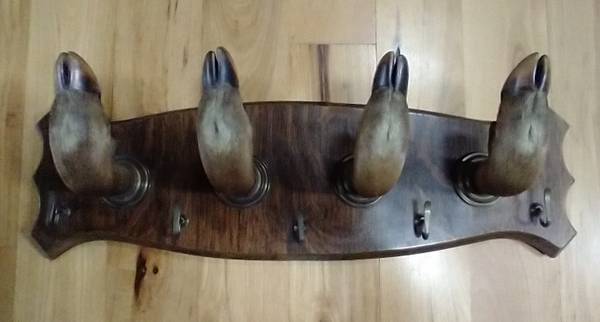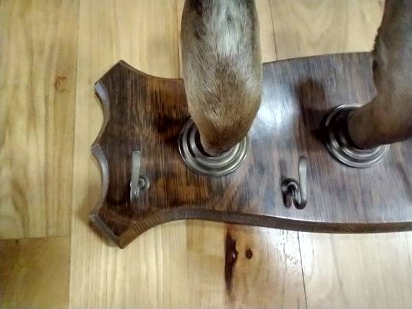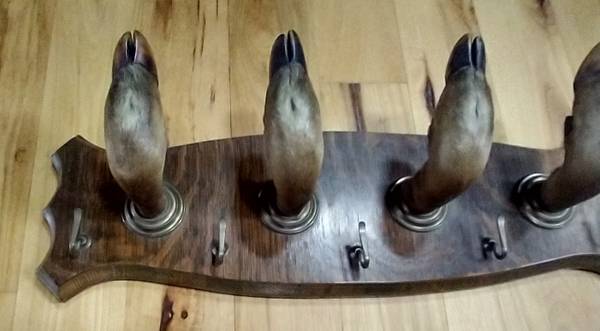 Up for sale is a Vintage Early 1900’s Deer Hooves and Brass Hook Coat Rack Gun Rack 9"h x 30"w x 8"d Rare!!!!