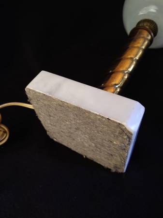 Vintage Brass, Marble and Milk Glass 30" Working Table Lamp with Gray felt on the bottom. Base is 5". Been in the family for many years! Bulb not included.